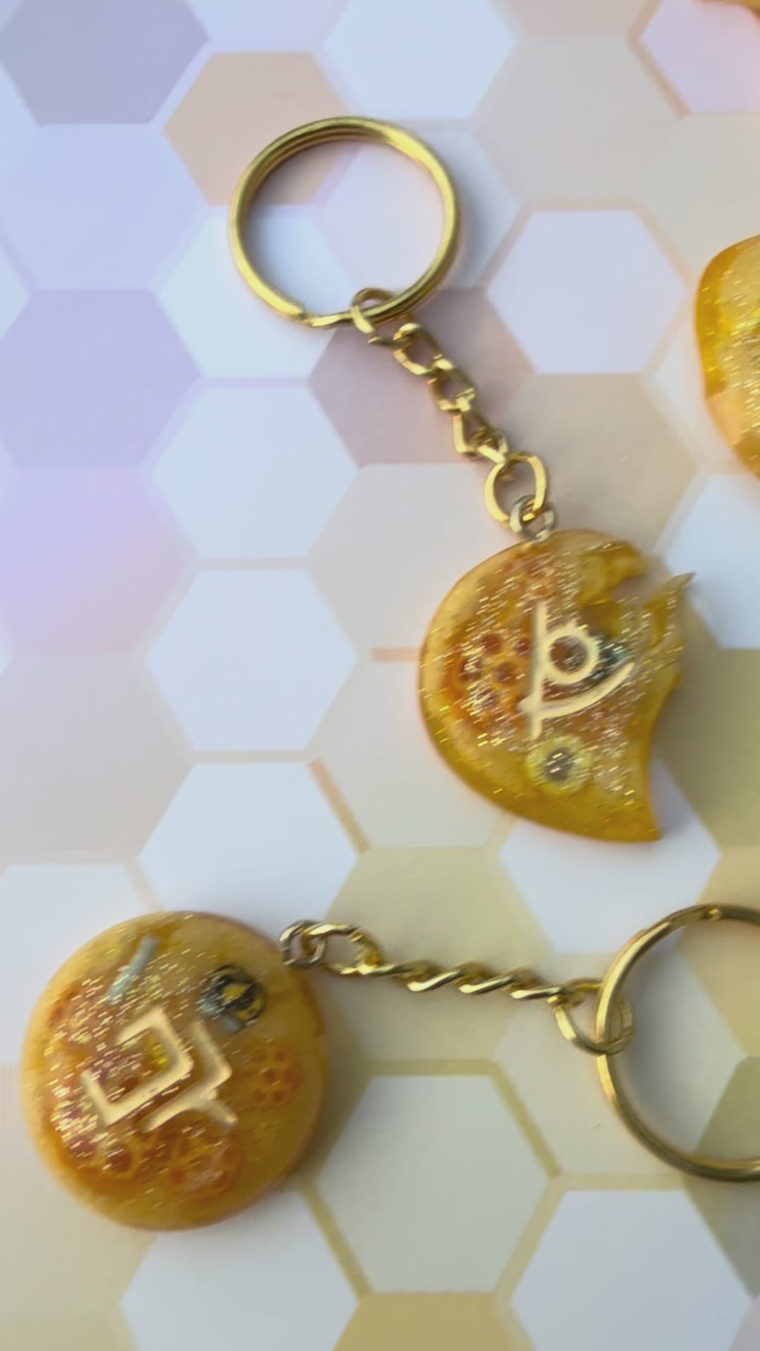 With a creamy honey yellow color and playful inclusions of clay honeycombs and bees, these M2S inspired keychains will delight and beguile FFXIV raiders who fell in love with Honey B. Lovely during the Arcadion Lightweight tier! 🐝